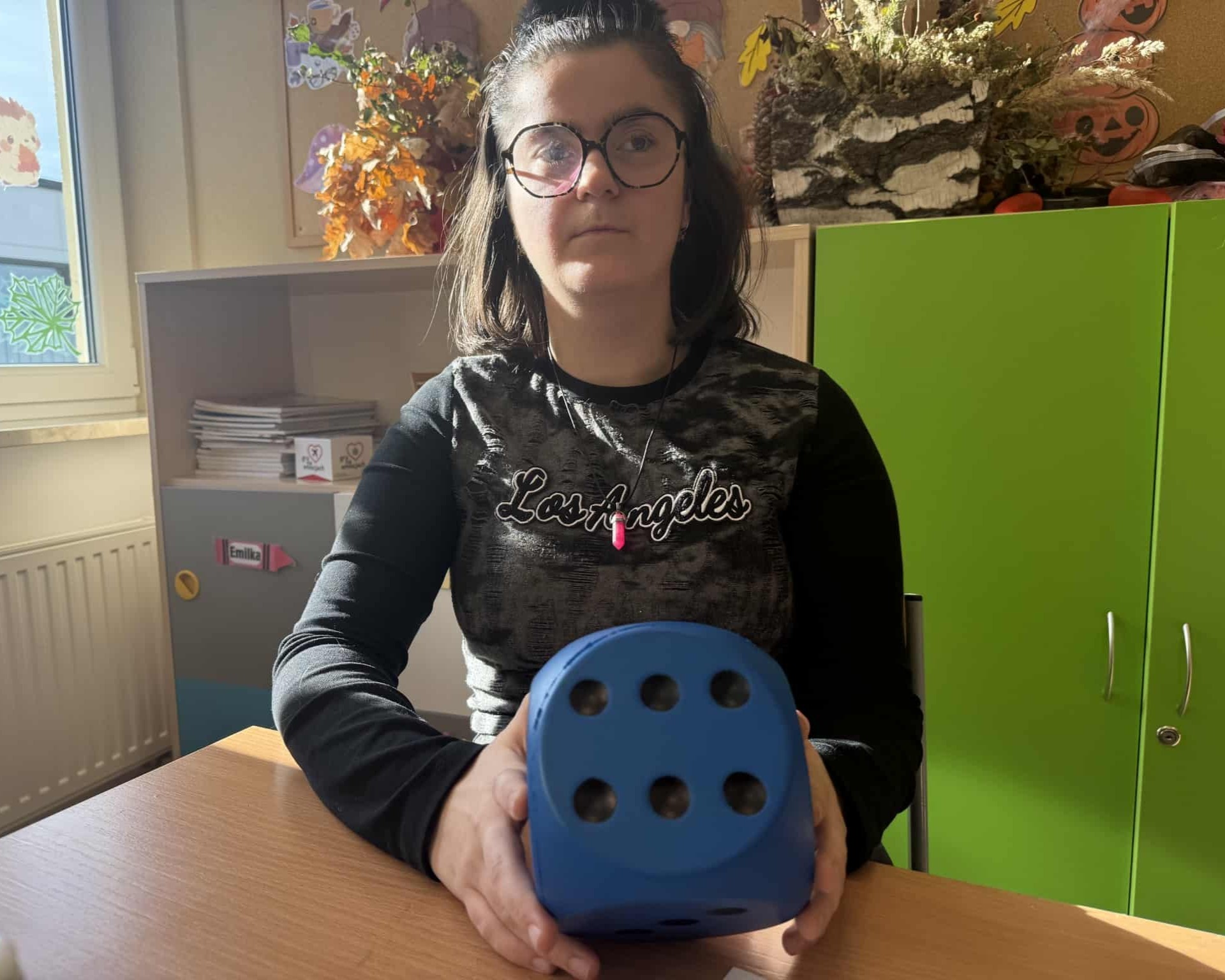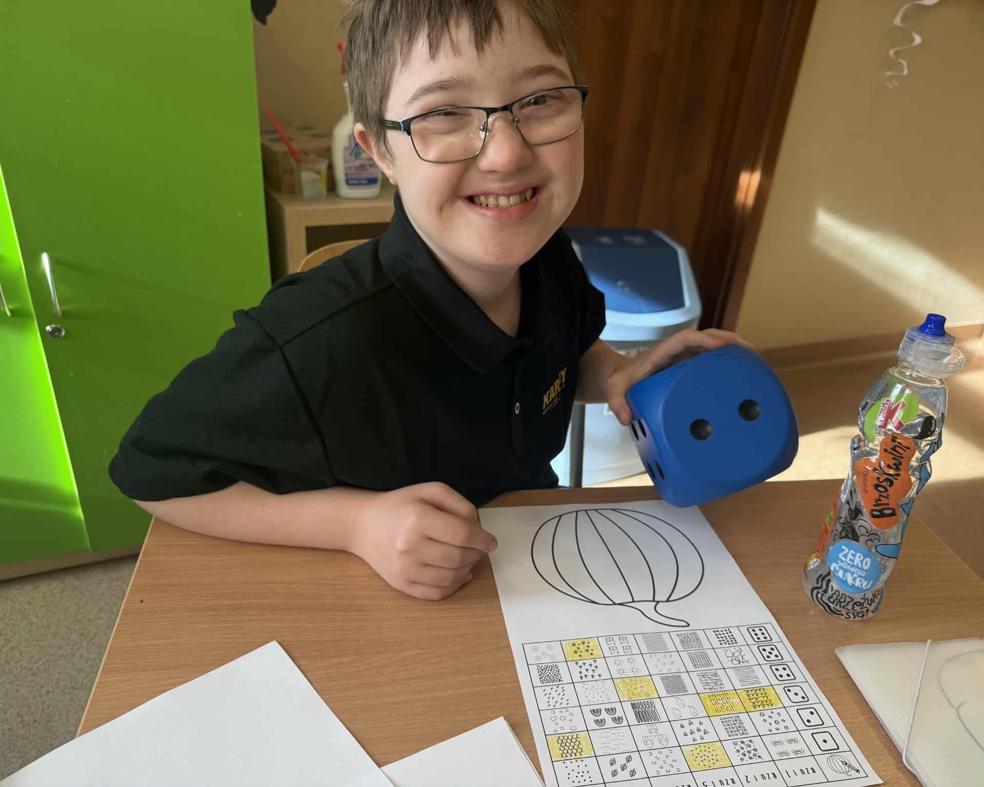 Nie zabrakło też zabawy plastycznej – każdy mógł narysować swoją dynię według wzoru, turlając kostką