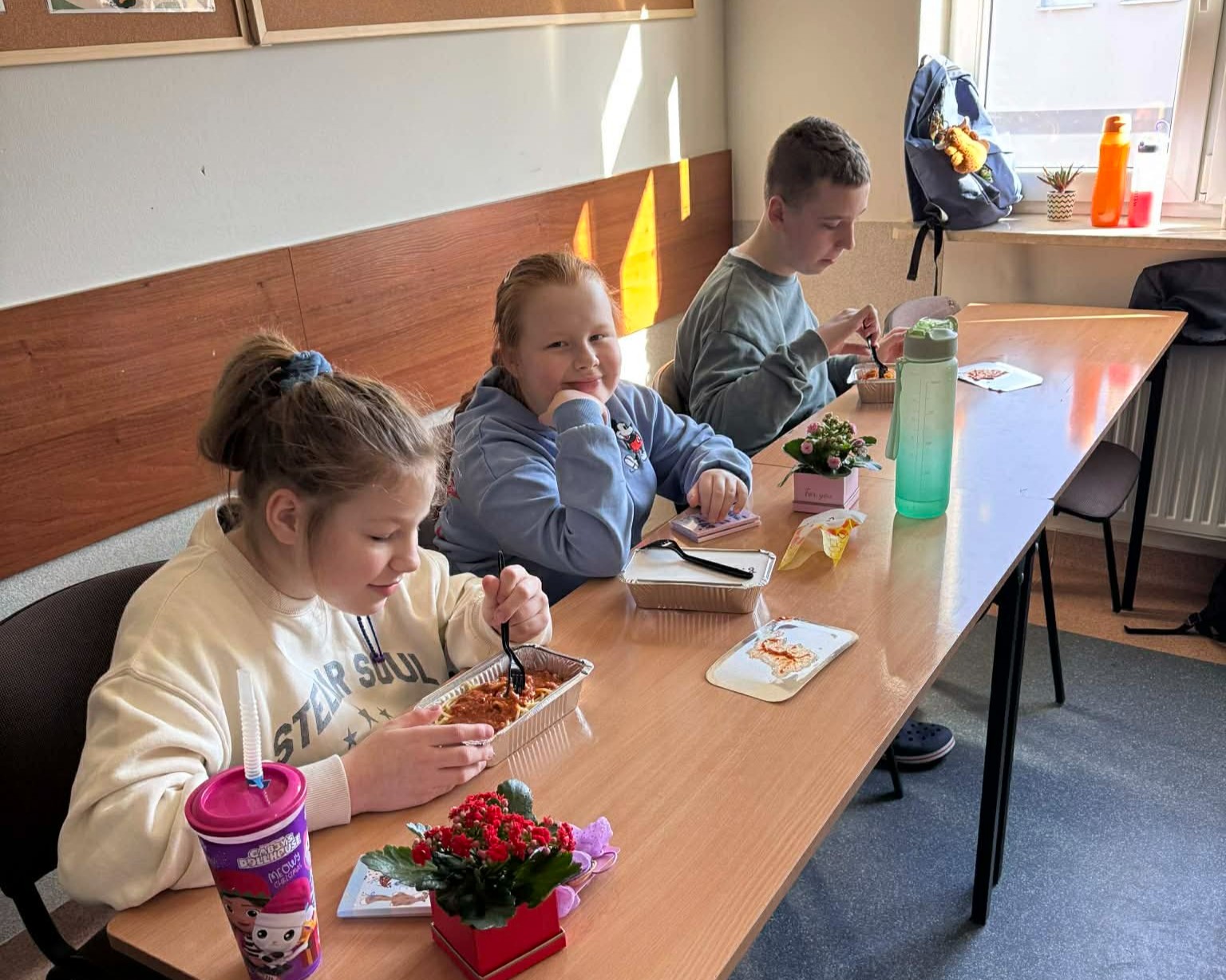 Święto uczciliśmy przy wspólnym przy stole – była pyszna pizza i spaghetti.