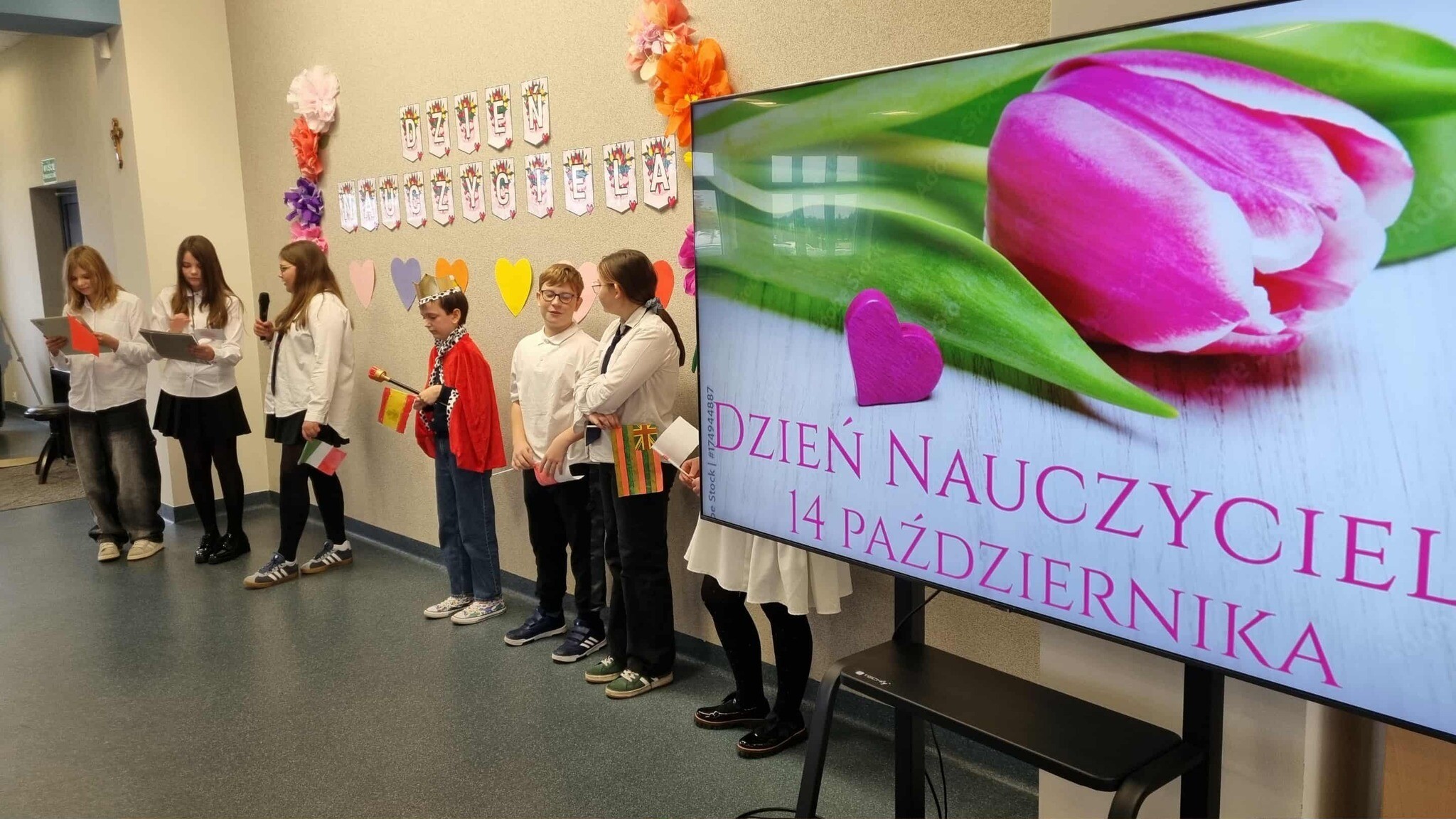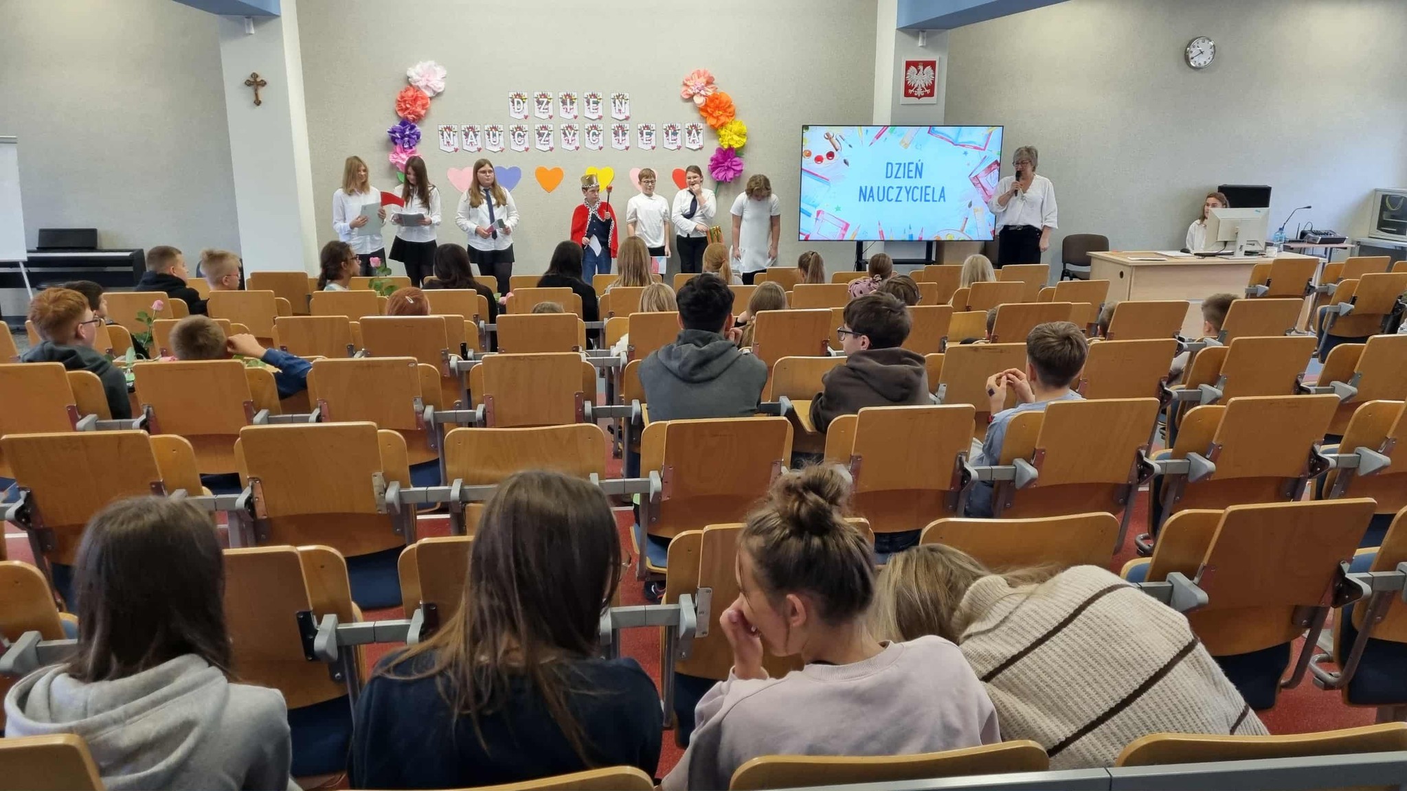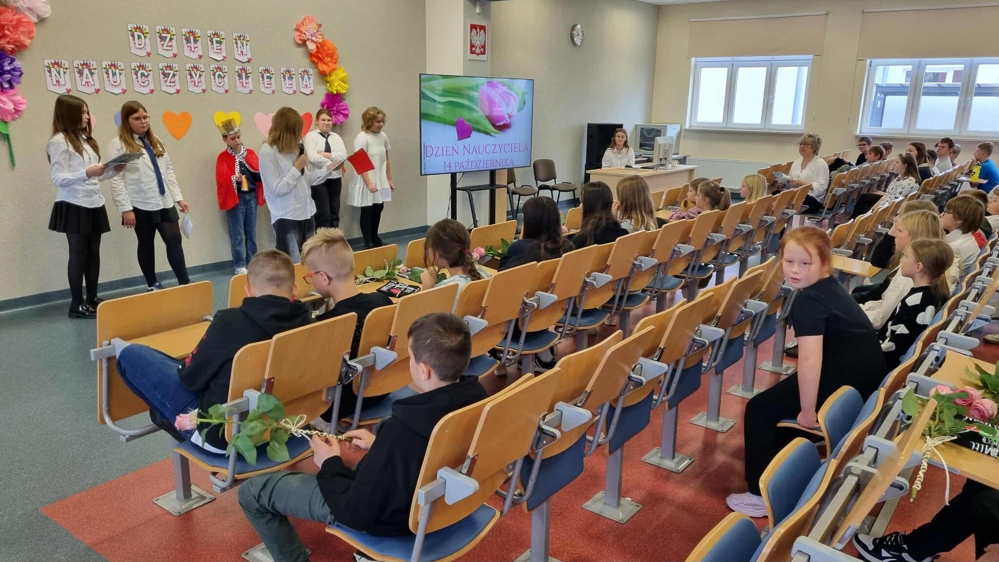 Z okazji Dnia Edukacji Narodowej uczniowie naszej szkoły przedstawili krótki program artystyczny dla swoich nauczycieli.