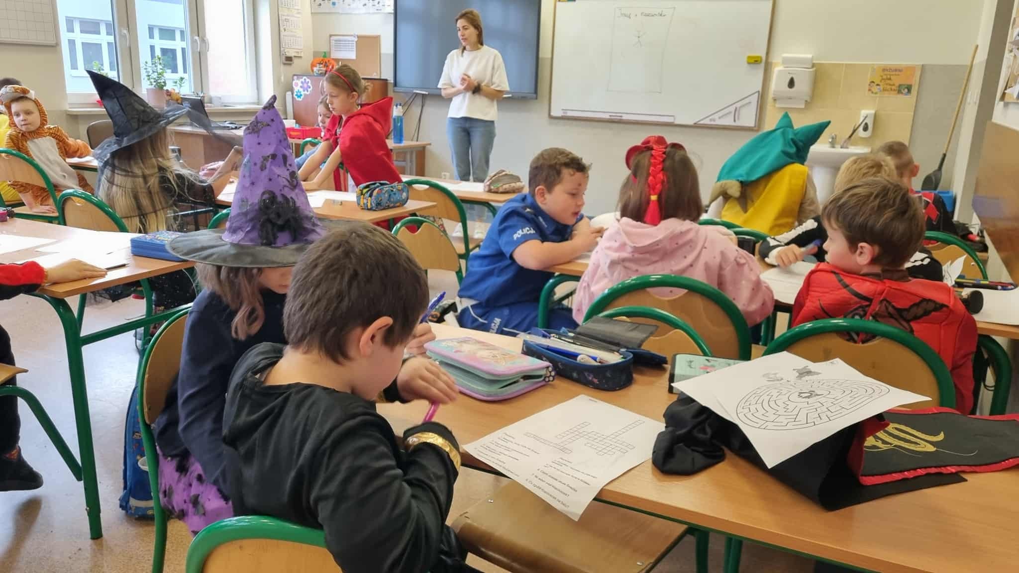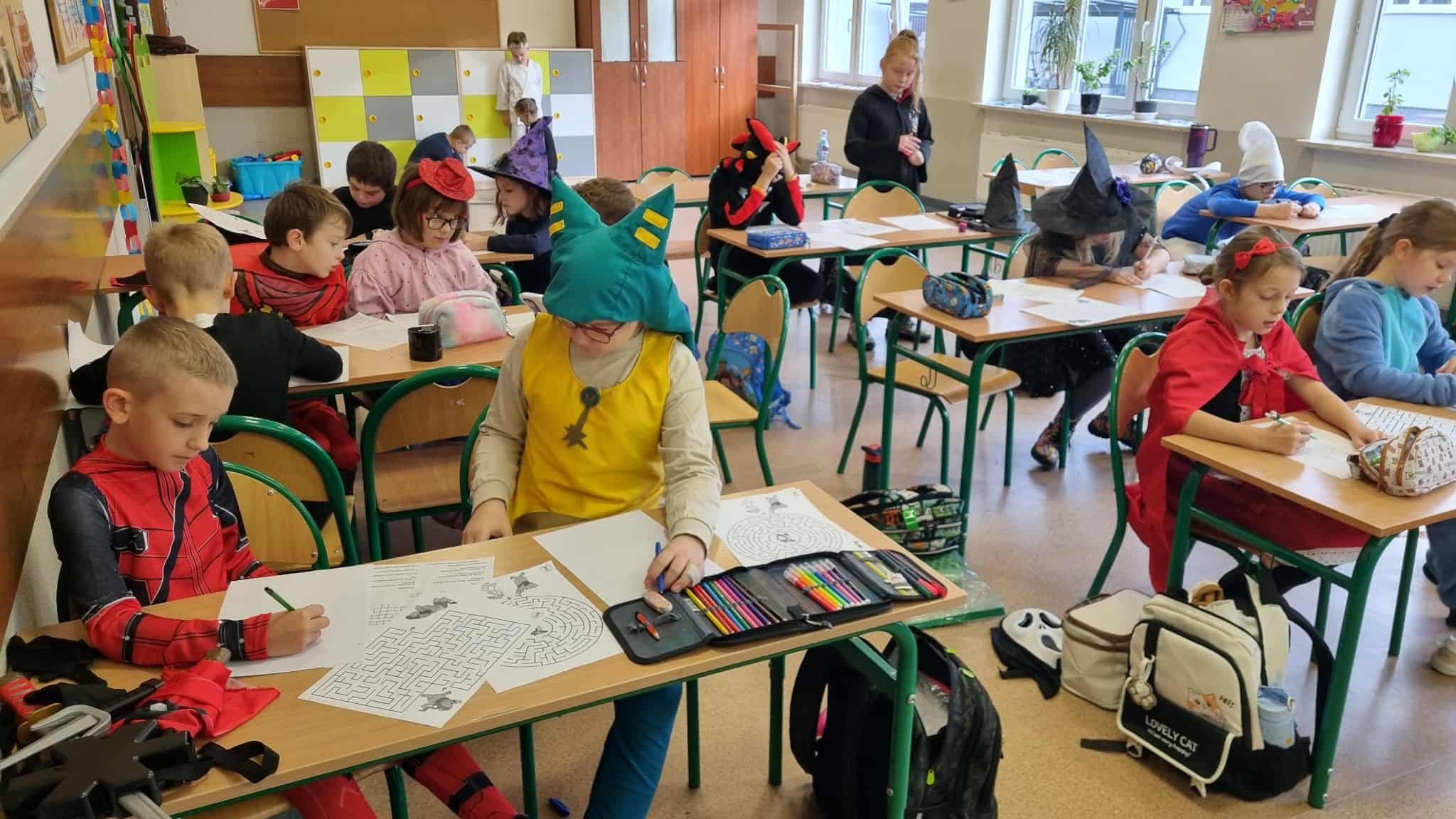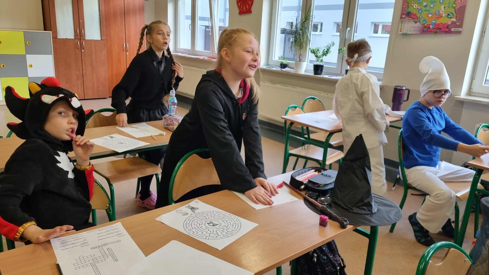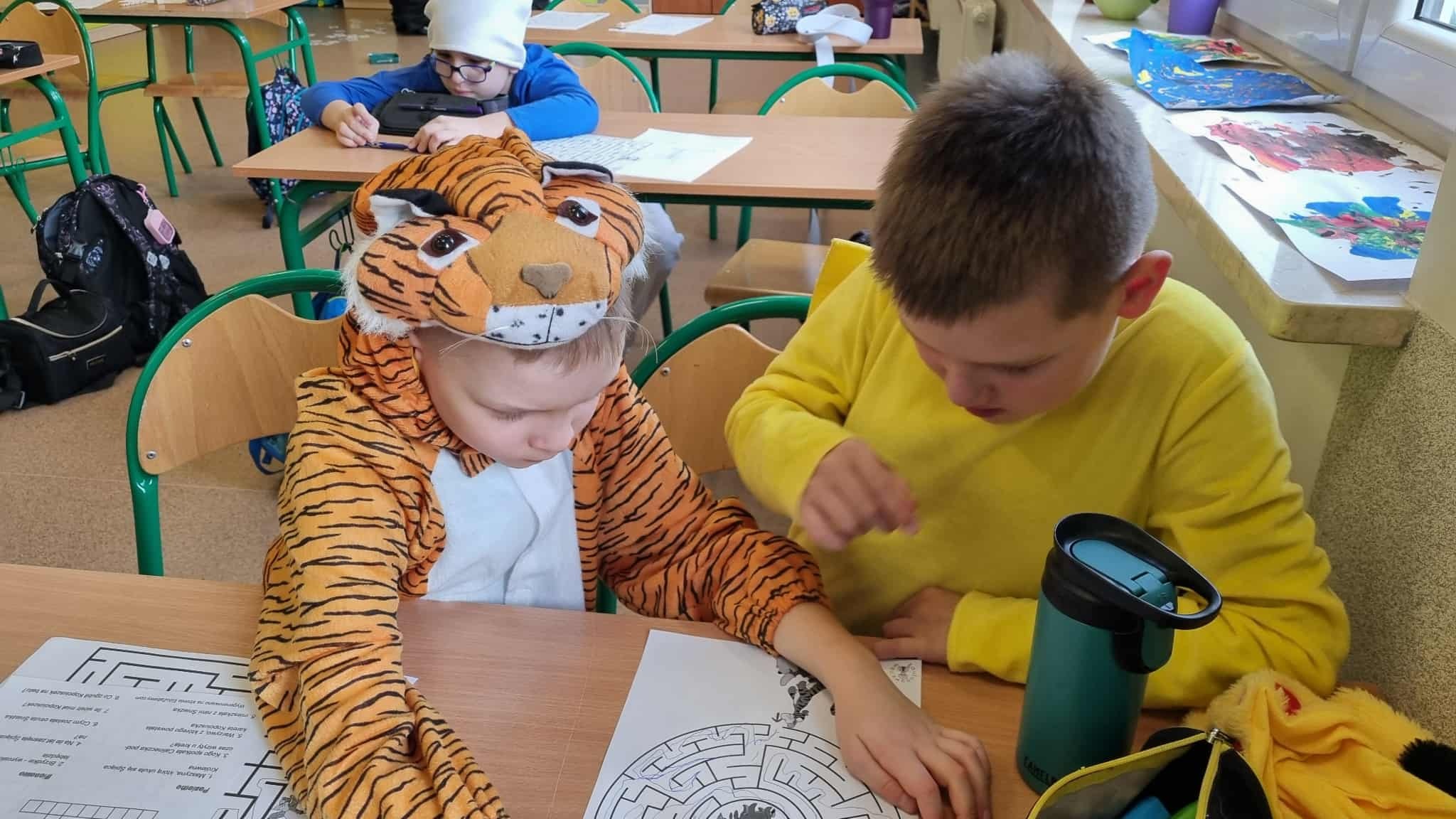 Podczas zajęć uczniowie brali udział w bajkowych zadaniach i łamigłówkach.