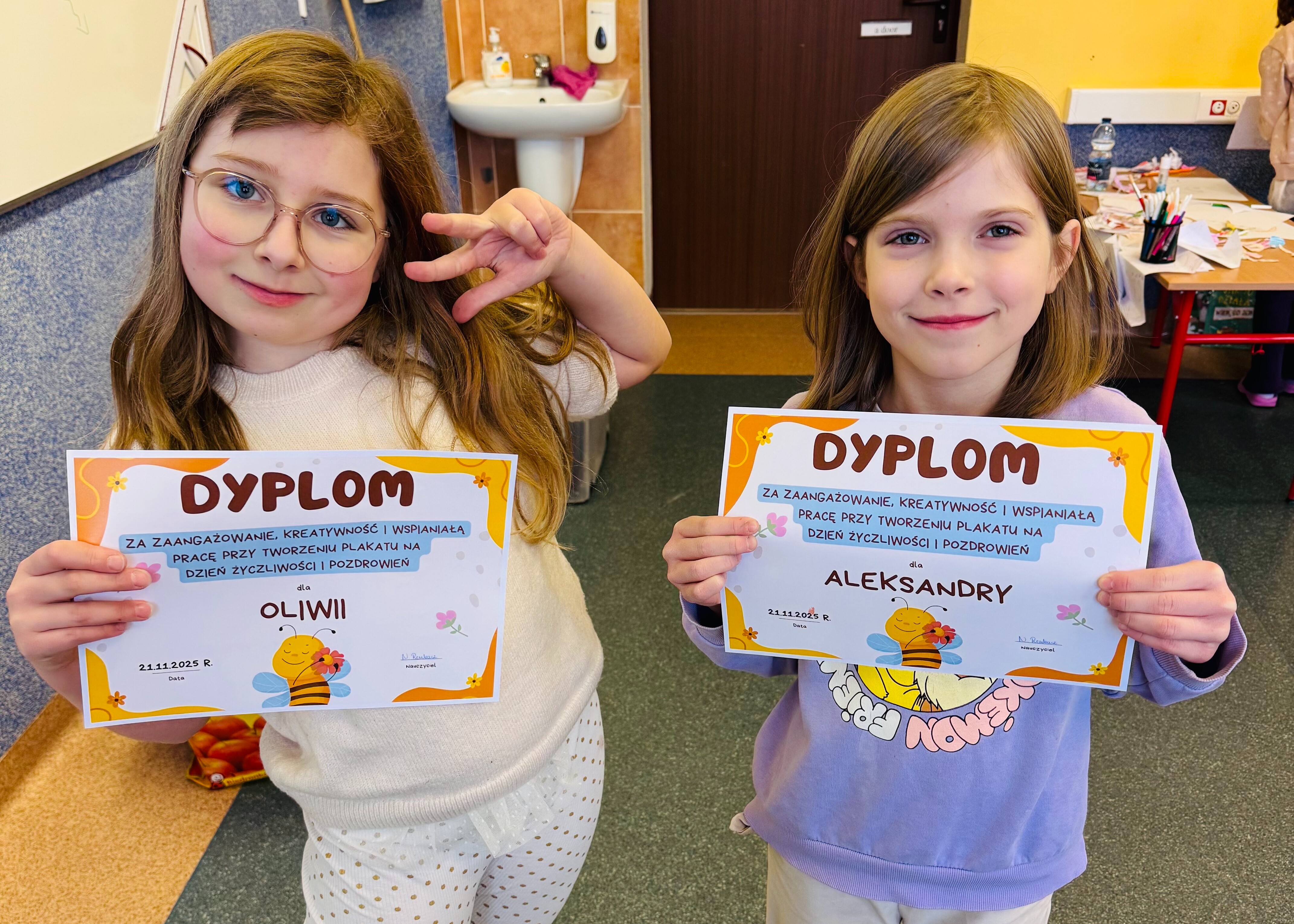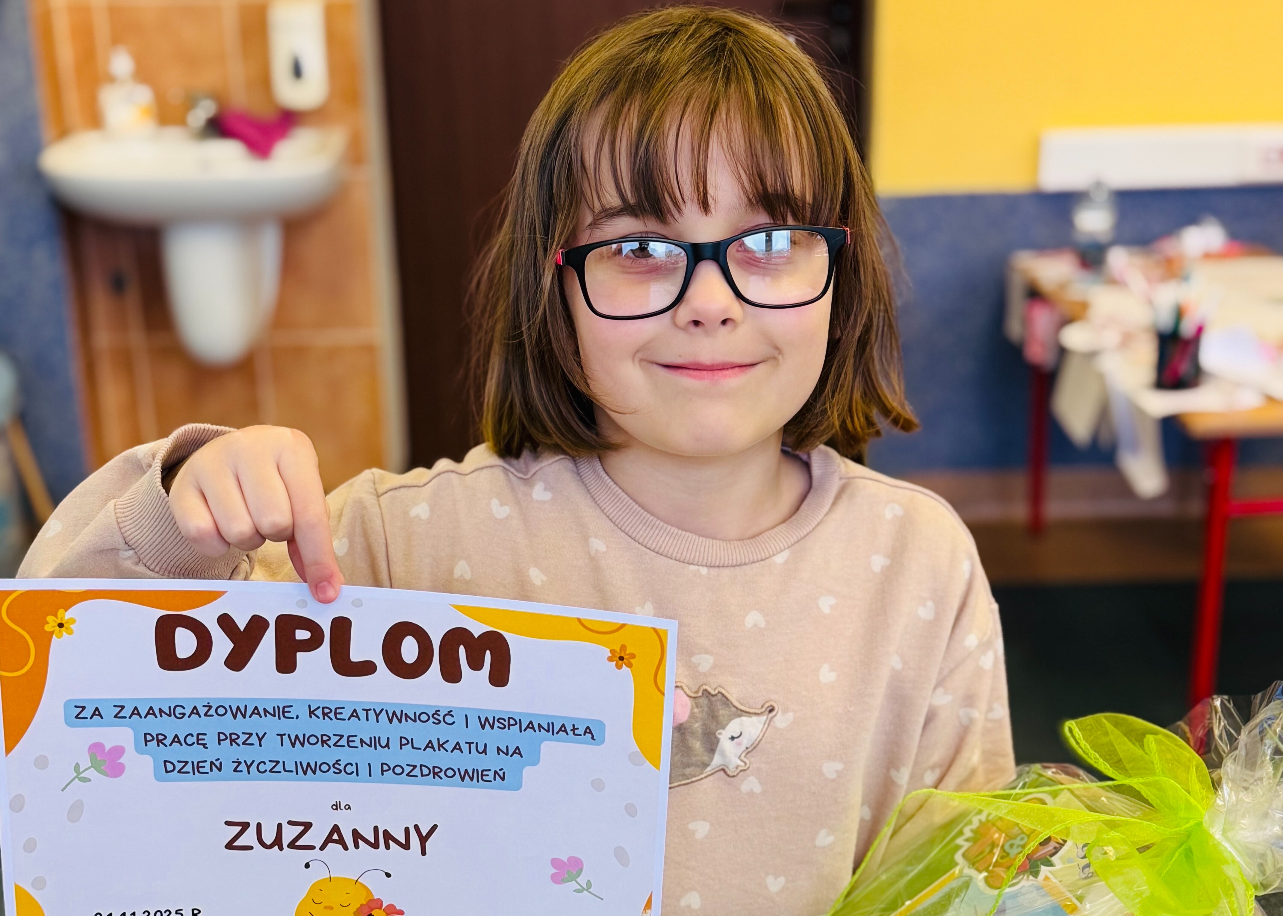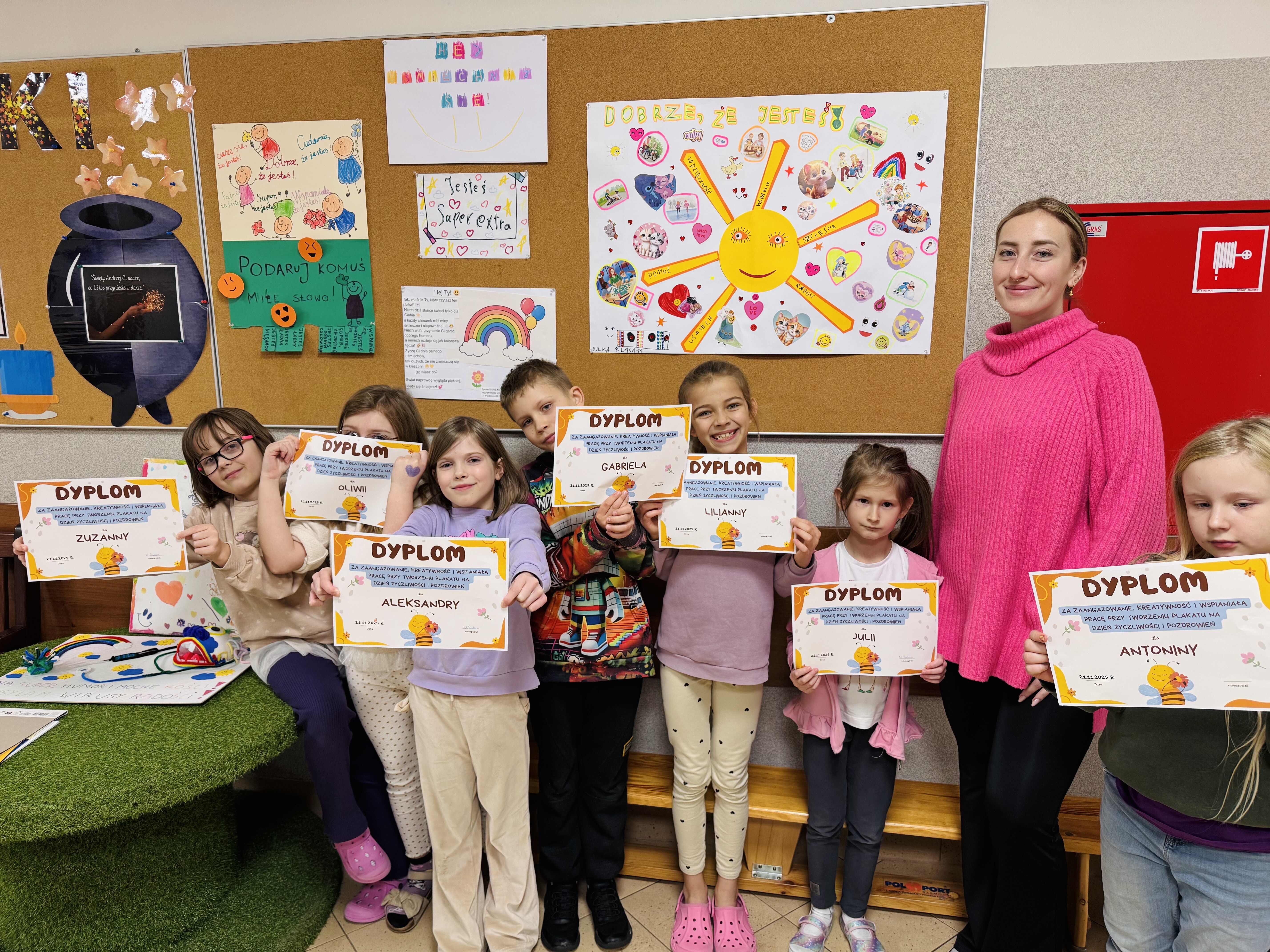 Pozostali uczestnicy również spisali się wspaniale. Każde dzieło było pełne życzliwości i zaangażowania. Wszyscy otrzymali dyplomy oraz słodki poczęstunek w podziękowaniu za udział i piękne przesłanie, które wnieśli do naszej szkolnej społeczności.