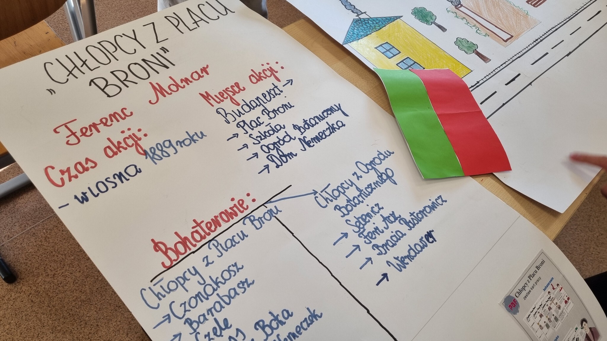 Wychodząc naprzeciw oczekiwaniom naszych uczniów, nauczyciele dokładają wszelkich starań, aby lekcje były kreatywne i inspirujące. Jak się okazuje i lektura może być ciekawa, tak uważają uczniowie klasy 5, którzy odkrywali swoje talenty twórcze przy okazji opracowywania " Chłopców z Placu Broni". Nie od dzisiaj wiadomo, że łatwiej jest się uczyć i zapamiętywać nowe treści stosując połączenie różnych metod. Tak właśnie pracujemy w naszej szkole, dlatego nasi uczniowie nigdy się nie nudzą.