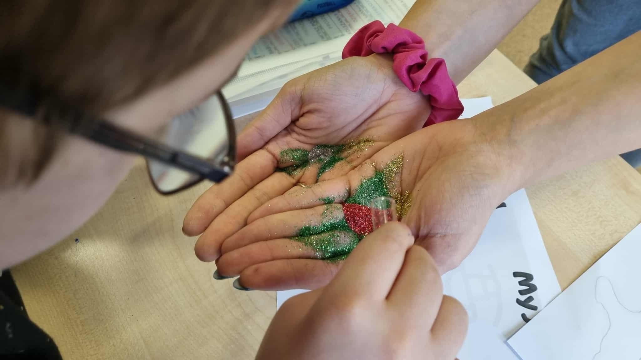 15 października rozmawialiśmy z dziećmi o tym, jak i dlaczego warto myć ręce. Była piosenka o myciu rąk i doświadczenie z brokatem, które pokazało, jak łatwo przenoszą się „zarazki”.