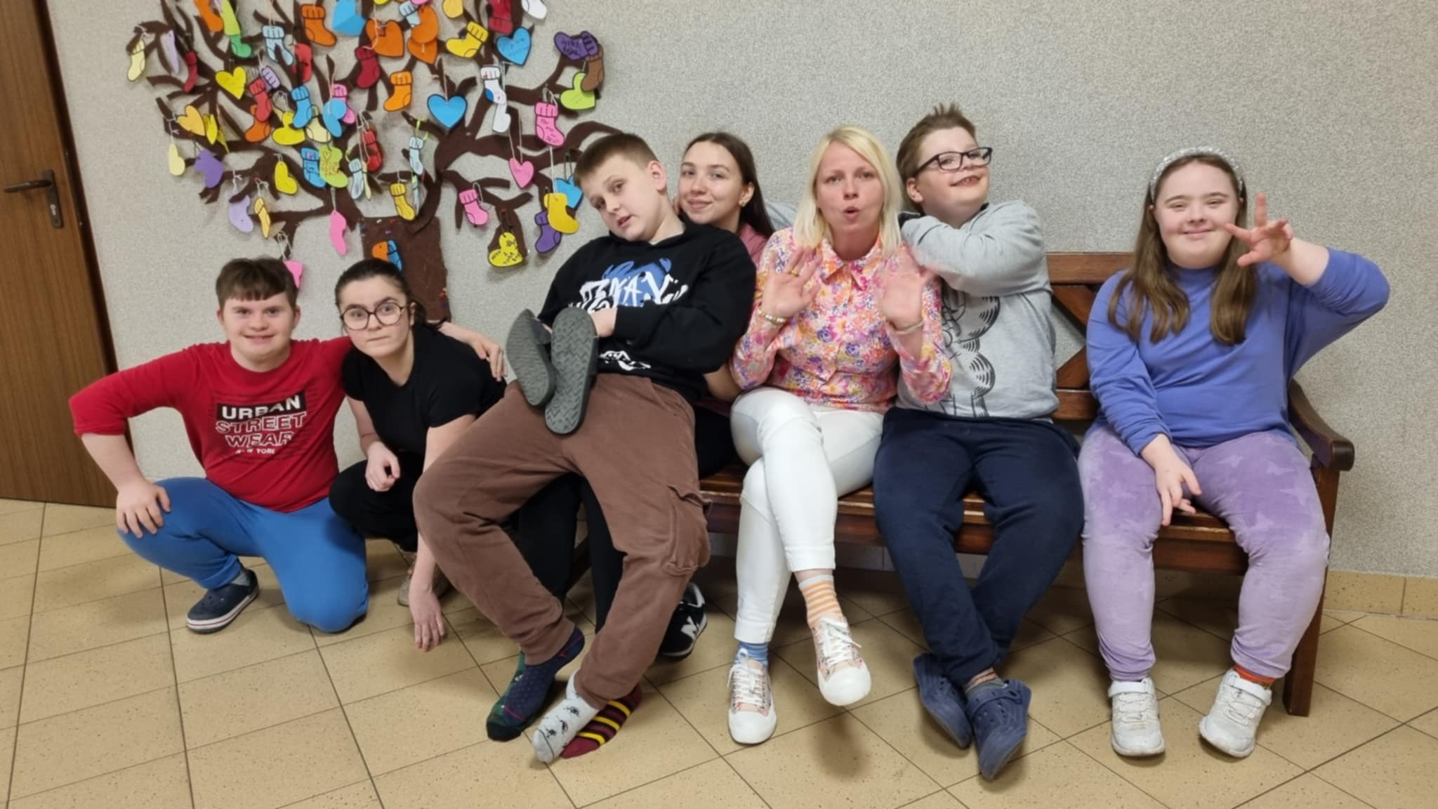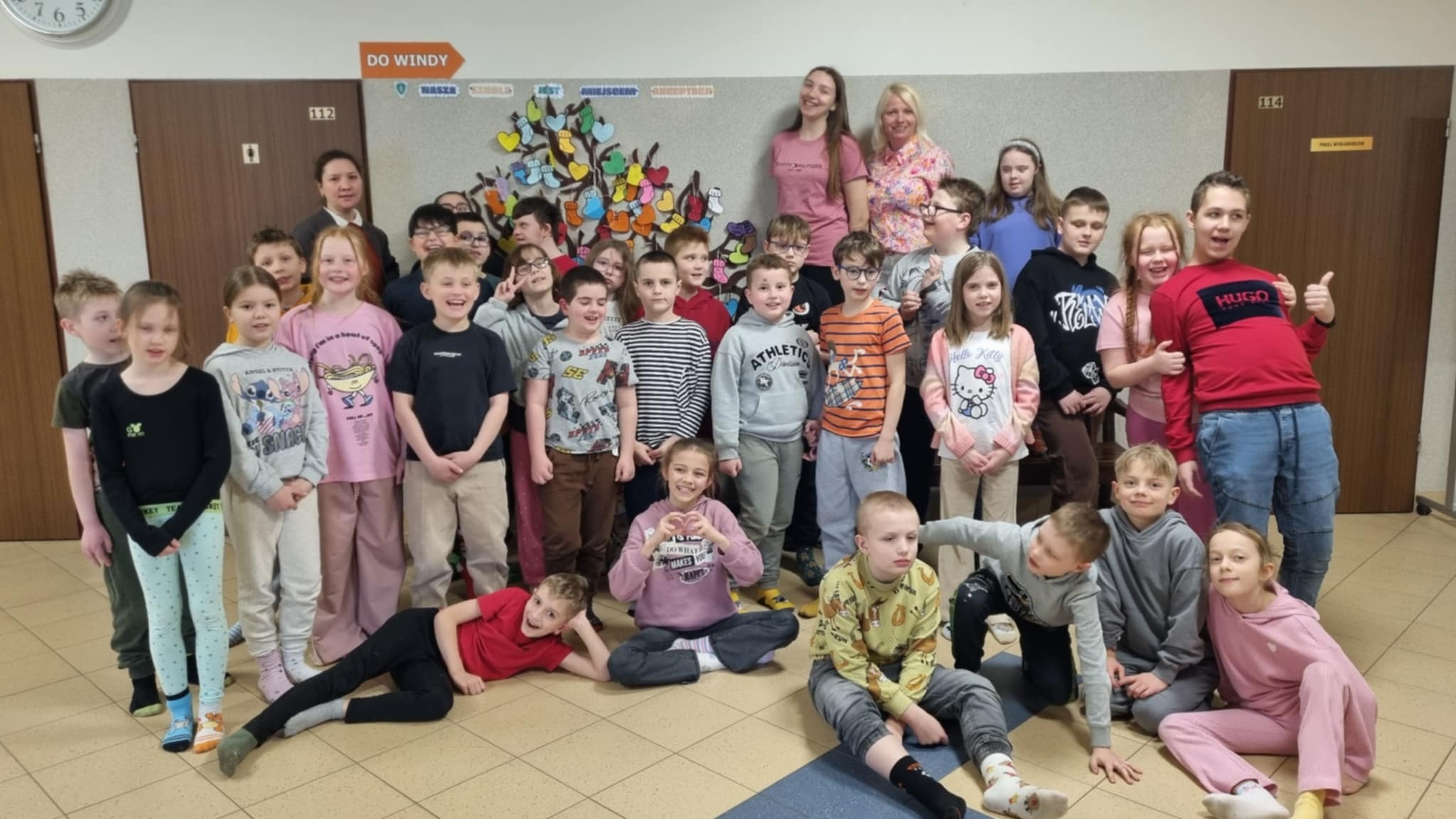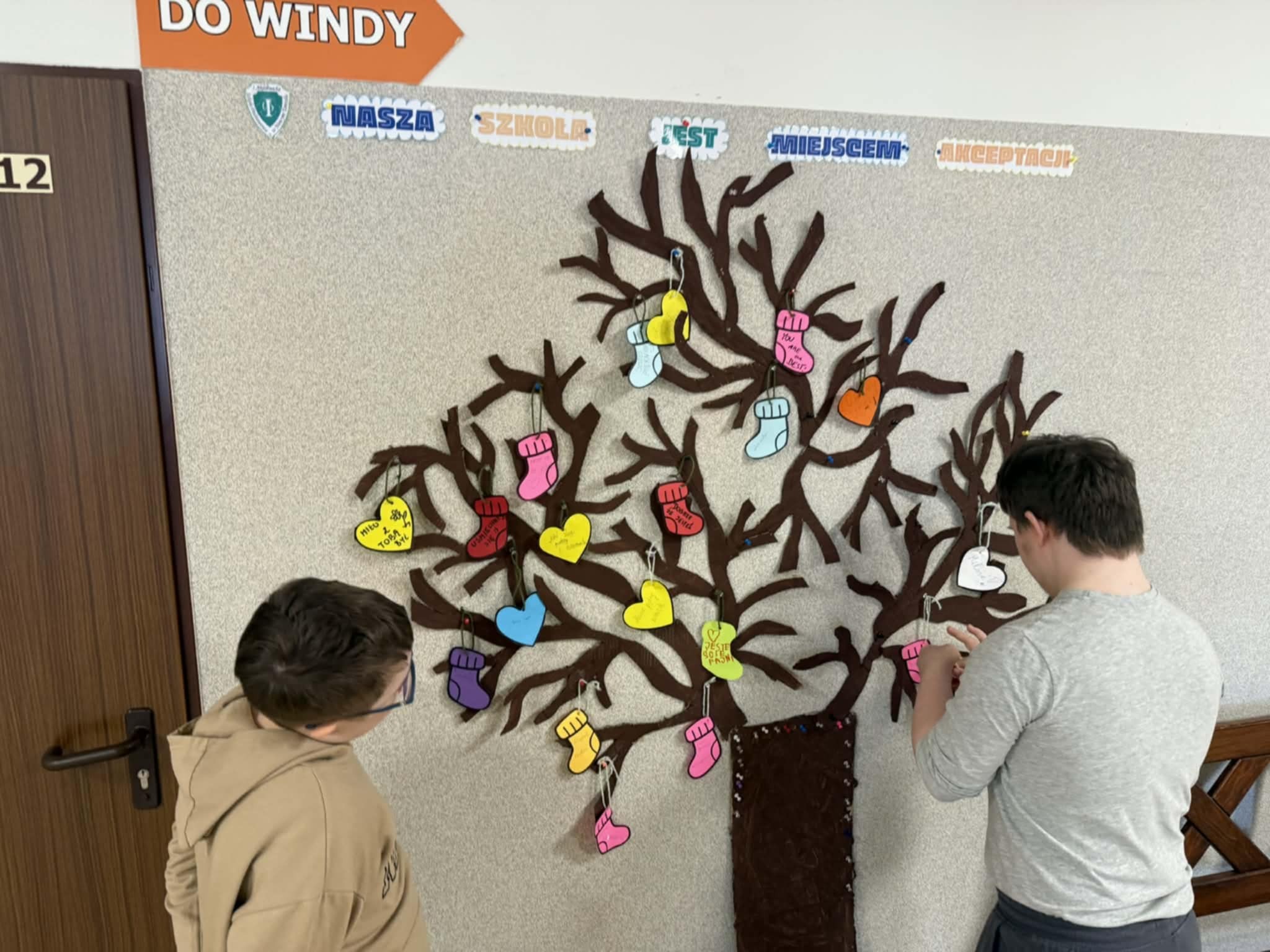 Przygotowali kolorowe skarpetki i serduszka, które rozdali nauczycielom oraz koleżankom i kolegom, zachęcając do napisania miłych, wspierających słów. Wszystkie trafiły na wspólne „drzewo życzliwości” na szkolnym korytarzu