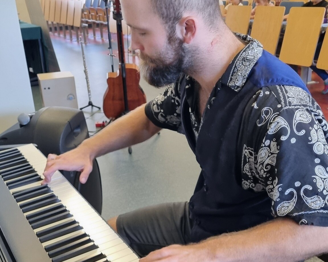 Odwiedził nas dzisiaj jeden z nauczycieli NEMESTRO – muzyk i artysta. Występuje na scenie jako jednoosobowy zespół, wykorzystując różne instrumenty oraz looper – urządzenie do nagrywania w czasie rzeczywistym.